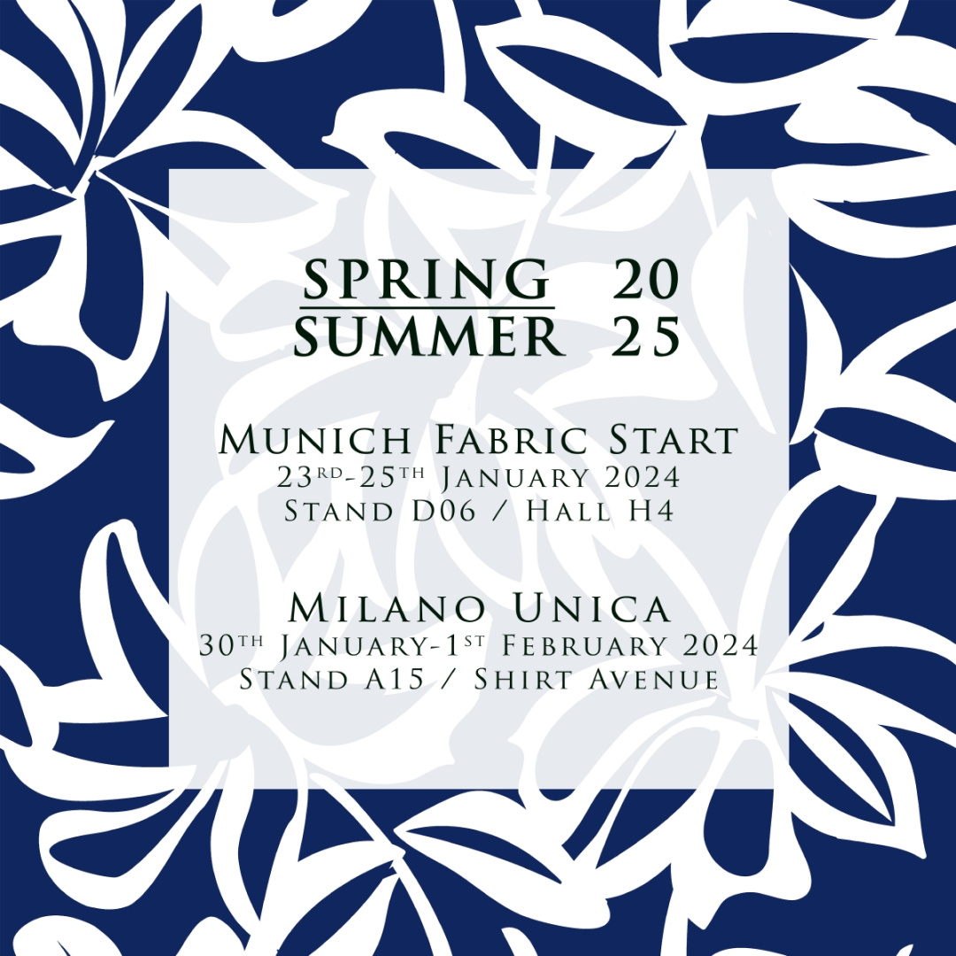 We will present our new SPRING/SUMMER 25 collections in Munich, at Munich Fabric Start and in Milan at Milano Unica textile fair.